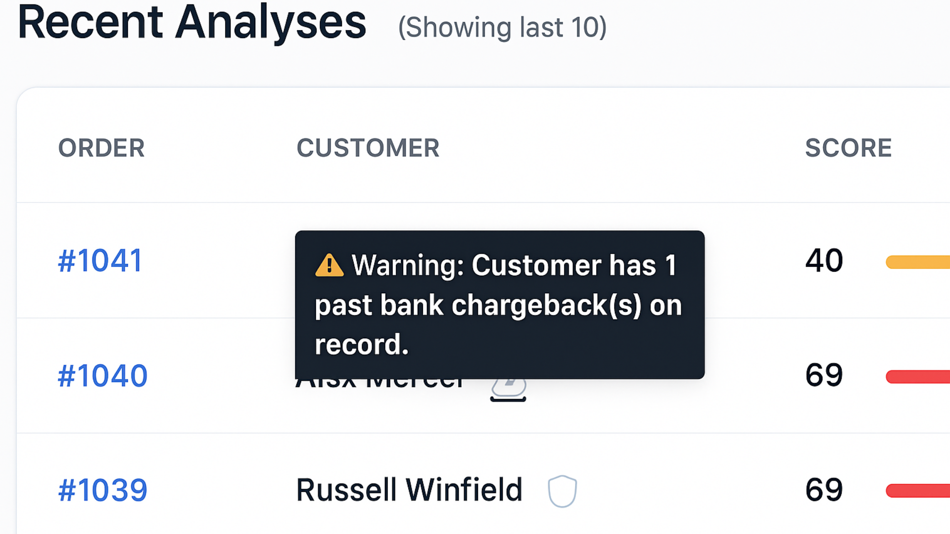 - Chargeback Radar: Detect customers who have a history of opening bank disputes. Save your inventory and block the unfair $15 bank penalty.